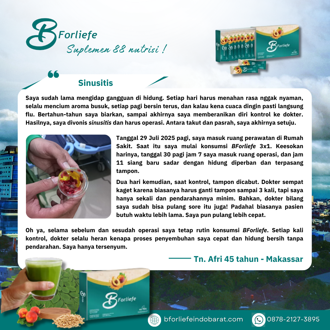 Melalui rangkaian testimoni, para konsumen berbagi pengalaman positif mereka setelah mengonsumsi BForliefe sesuai anjuran. Dari ibu rumah tangga, pekerja kantoran, hingga lansia, semuanya merasakan perubahan yang membuat hidup lebih sehat, produktif, dan bahagia.